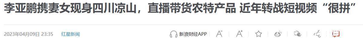 红星新闻——李亚鹏携妻女现身四川凉山,直播带货农特产品 近年转战短视频“很拼”