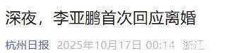 杭州日报——深夜,李亚鹏首次回应离婚