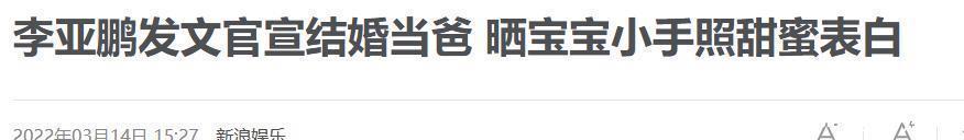 新浪娱乐——李亚鹏发文官宣结婚当爸 晒宝宝小手照甜蜜表白